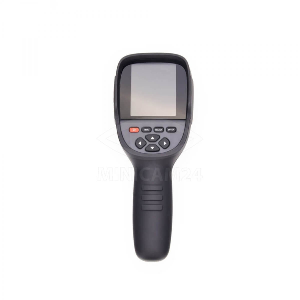 Ручной теплоизмерительный прибор с удобной рукоятью и курком для включения. В основе прибора болометрическая матрица разрешением 220х160 элементов. Прибор так же оборудован камерой видимого спектра с разрешением 0.3 Мп и может совмещать на одном экране изображение в видимом спектре и его тепловое изображение. Предел измерения температуры от -20 до 300 градусов с точностью 5%. Питается прибор от встроенного аккумулятора напряжением 3.7 вольта. Для передачи видеофайлов на ПК или смартфон предусмотрен порт USB.